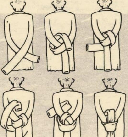 Потом цвет стал означать тяжесть преступления. Если преступление было незначительным, применялась белая веревка 🤍. За тяжкие преступления полагалась синяя 💙, а если преступник занимал высокое положение в обществе, его сковывали веревкой пурпурного цвета 💜. Низшие сословия связывались черной веревкой 🖤, а прочие чины — веревками, окрашенными в желтый 💛 или голубого цвет 🩵, в зависимости от их статуса.
